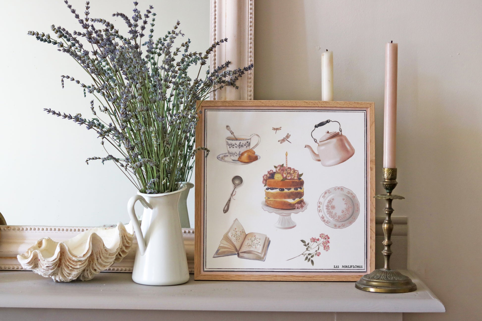 Notre affiche "L'heure du thé" trouvera parfaitement sa place dans votre cuisine ou votre bureau. Elle est idéale pour les amoureux de l'Histoire, du Tea time à l'anglaise et de la pâtisserie en général ainsi que pour celles et ceux qui ont à cœur le travail à la main et local.