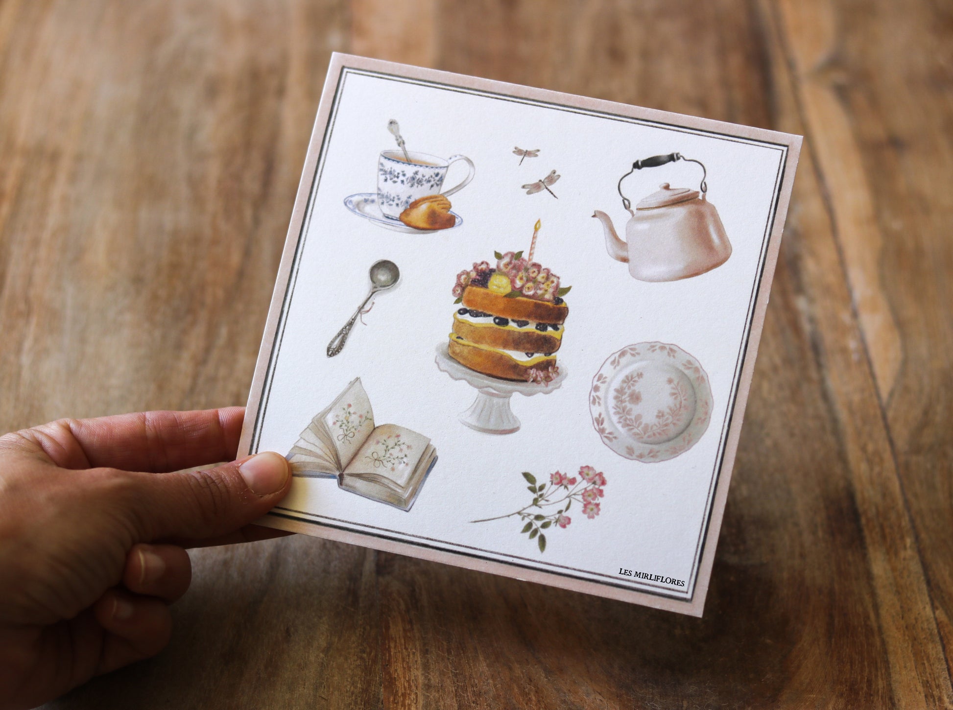 Découvrez nos cartes illustrés par Elisa, sur le thème de la pâtisserie et du goûter. Nos cartes sont parfaites en décorations ou pour écrire de jolis mots. Dans un lot vous aurez un exemplaire de chaque cartes, soit trois cartes.